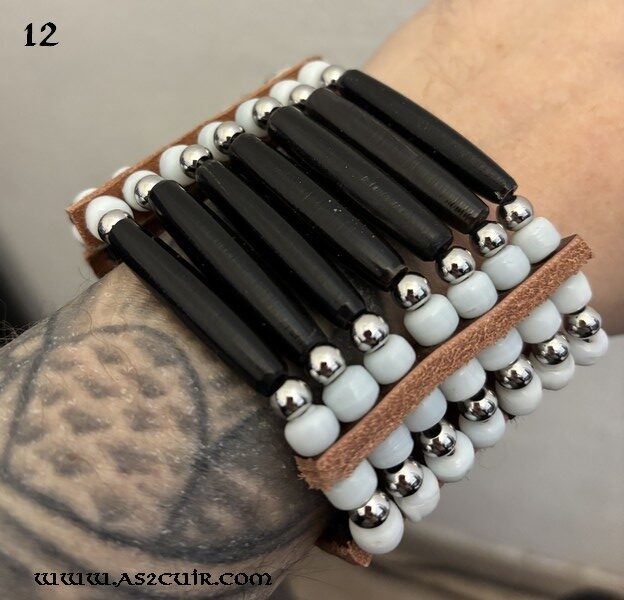 Mes bracelets en os et perles sont GARANTIS A VIE. Les couleurs du cuir, des tressages et des perles, ainsi que le nombre de rangs restent à vos seuls goût et désirs.
