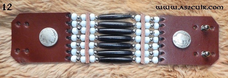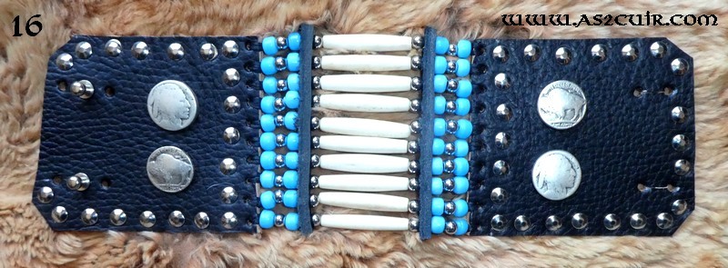 A l’inverse des bracelets conchas, pour ces bracelets mi-os mi-cuir, c’est la partie perlée orne le centre.