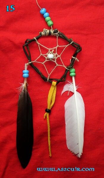 Le “dream catcher” est, par essence, mystérieux et bénéfique. Il filtre, durant le sommeil, nos émotions, ne conservant dans sa toile que le positif, les rêves, afin de laisser évacuer le négatif et les cauchemars. Il accorde un sommeil réparateur.