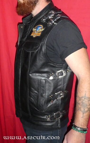Je reprendrais un de mes article sur les bandanas expliquant : “C’est assez étrange comme métamorphose, ce qui peut arriver à l’homme à la cinquantaine… les cheveux rentrent dans le corps pour s’amasser dans le ventre afin de modeler un confortable coussin pour sa compagne !!!! Si si je vous assure, c’est bien ce qui se passe… juste pour votre confort, mesdames… vous pouvez nous remercier.” Donc, le résultat de cette métamorphose va être de ne plus rentrer dans ses fringues… quand ce sont des cuirs ça fait encore plus mal !!!! Plutôt que de tout changer il existe toujours une solution à moindre budget… et c’est qui qui s’y colle ? Mes mimines !!!!
